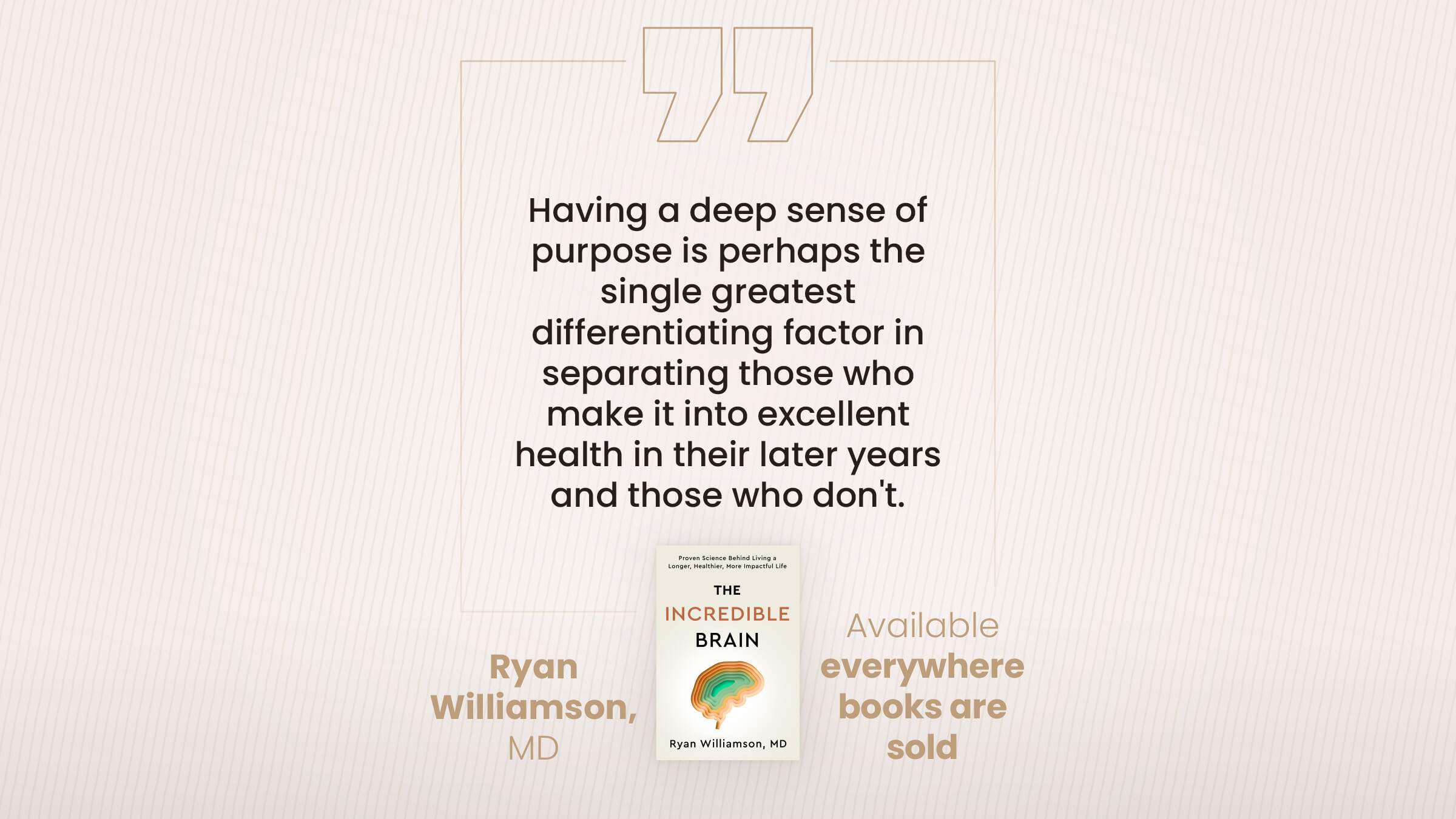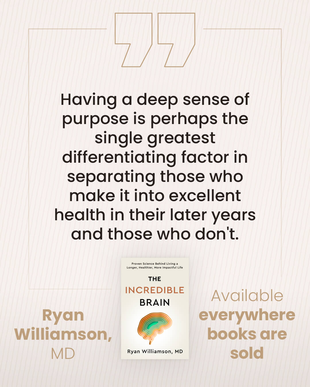 In his powerful new book “The Incredible Brain,” neurologist @Dr. Ryan Williamson explains how having a clear purpose is perhaps the single greatest differentiating factor in who makes it into excellent health in their later years.
